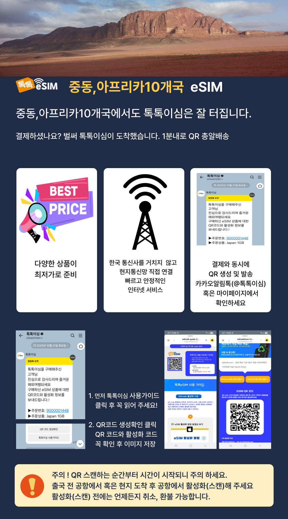 톡톡eSIM: 중동,아프리카 10개국 30일간 제공