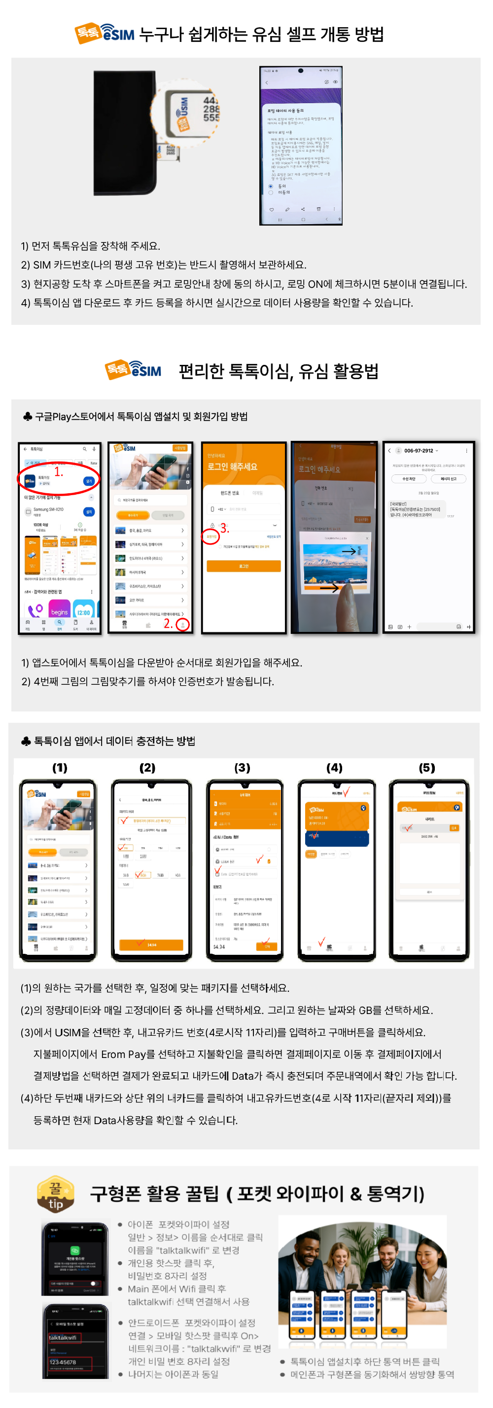 톡톡이심 APP 설치 후 회원가입 및 SIM 카드 등록