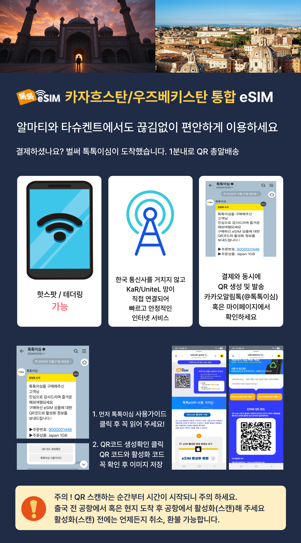 톡톡eSIM: 카자흐스탄,우즈베키스탄 20일간 제공