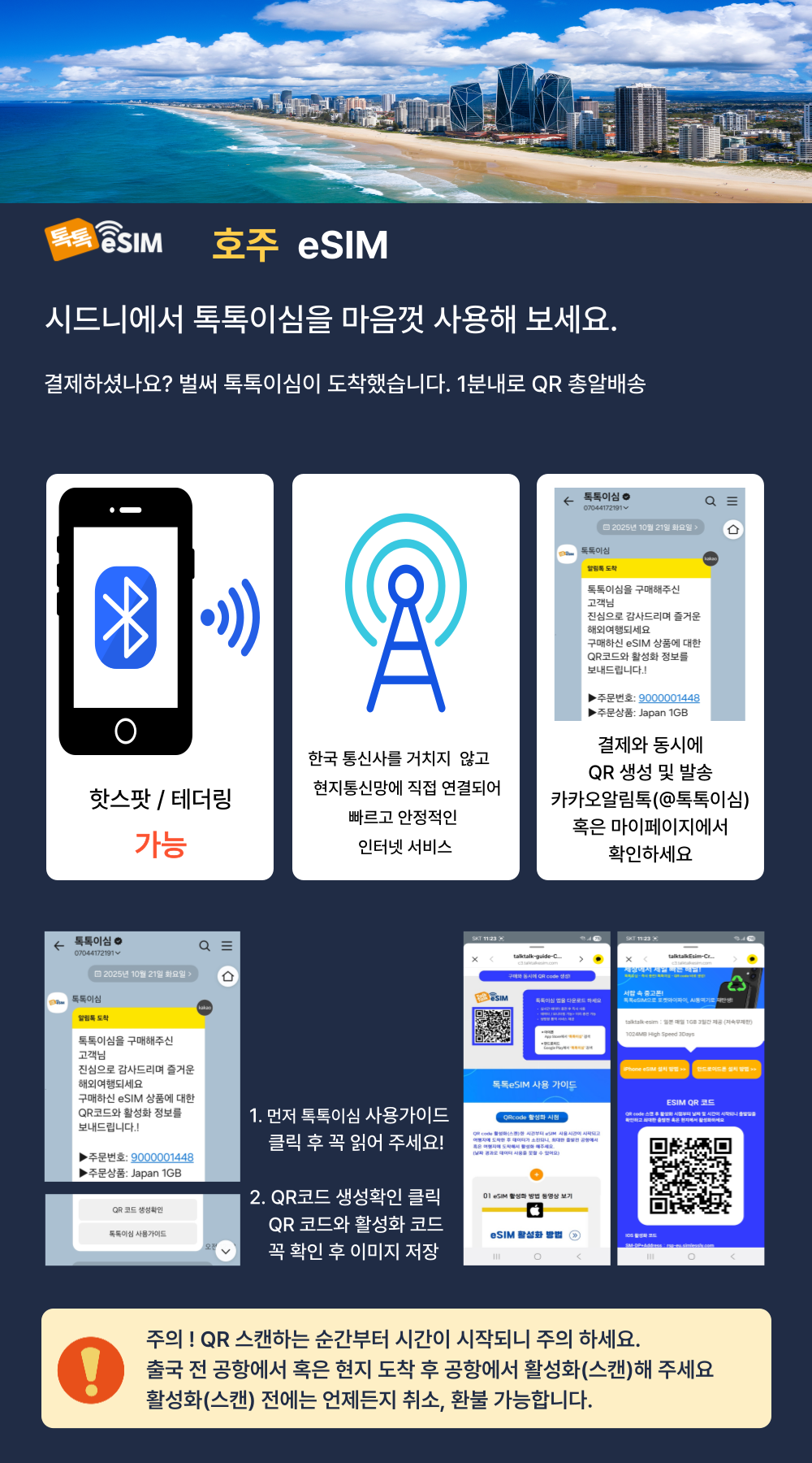 톡톡eSIM: 호주 매일 1GB 제공