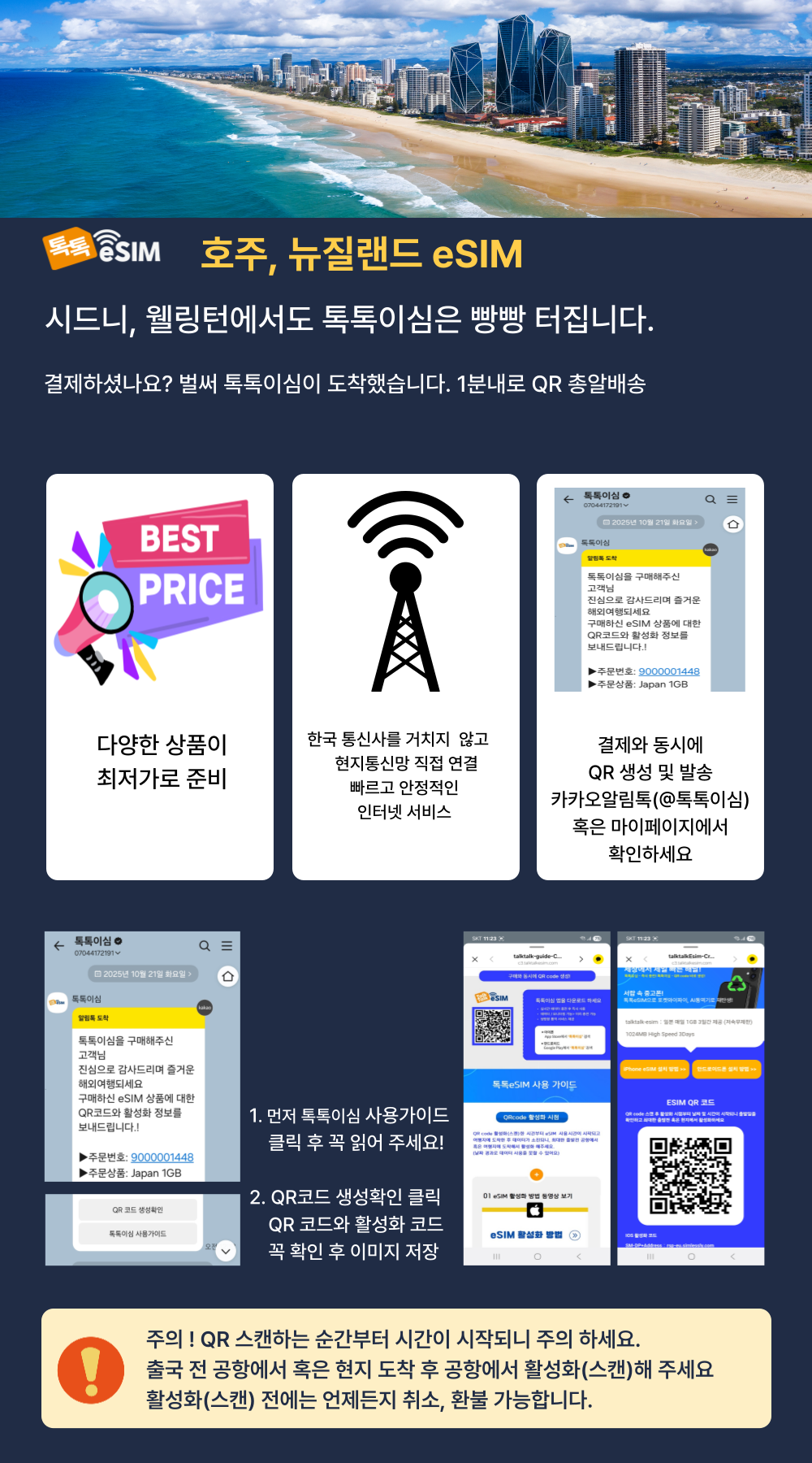 톡톡eSIM: 호주,뉴질랜드 10일간 제공