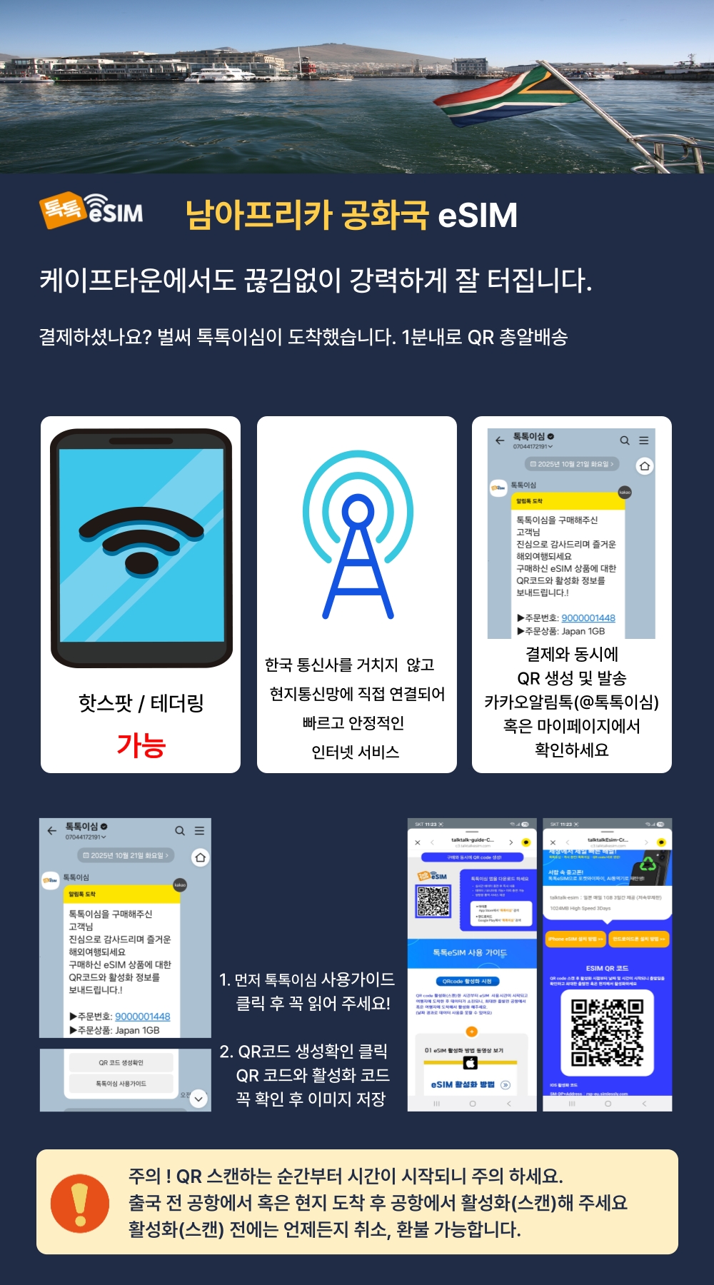 톡톡eSIM: 남아프리카공화국 30일간 제공