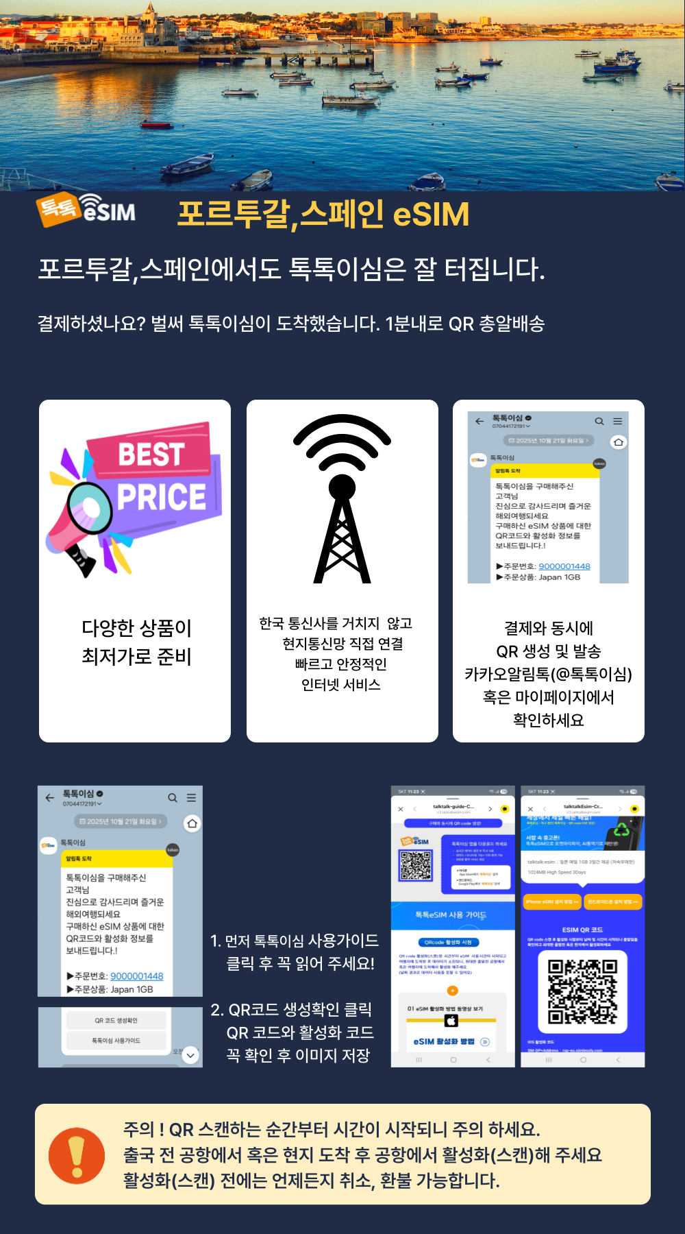 톡톡eSIM: 스페인,포르투갈 10일간 제공