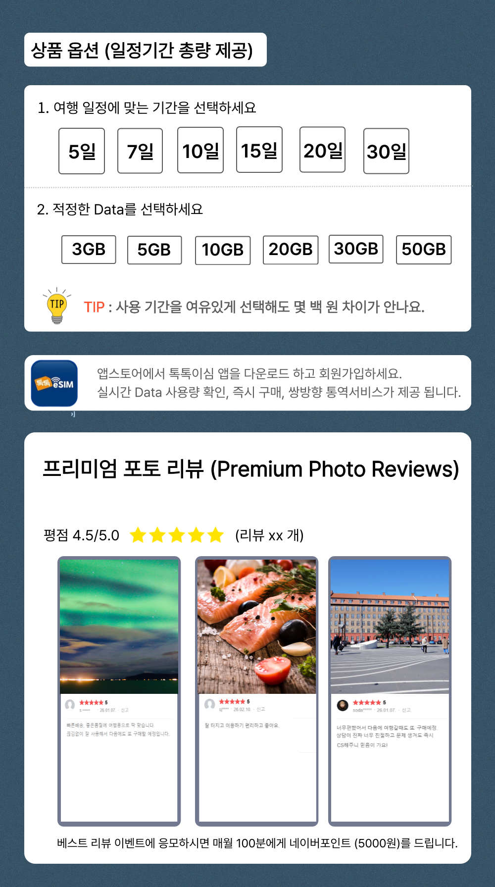 톡톡eSIM: 북유럽5개국 15일간 제공