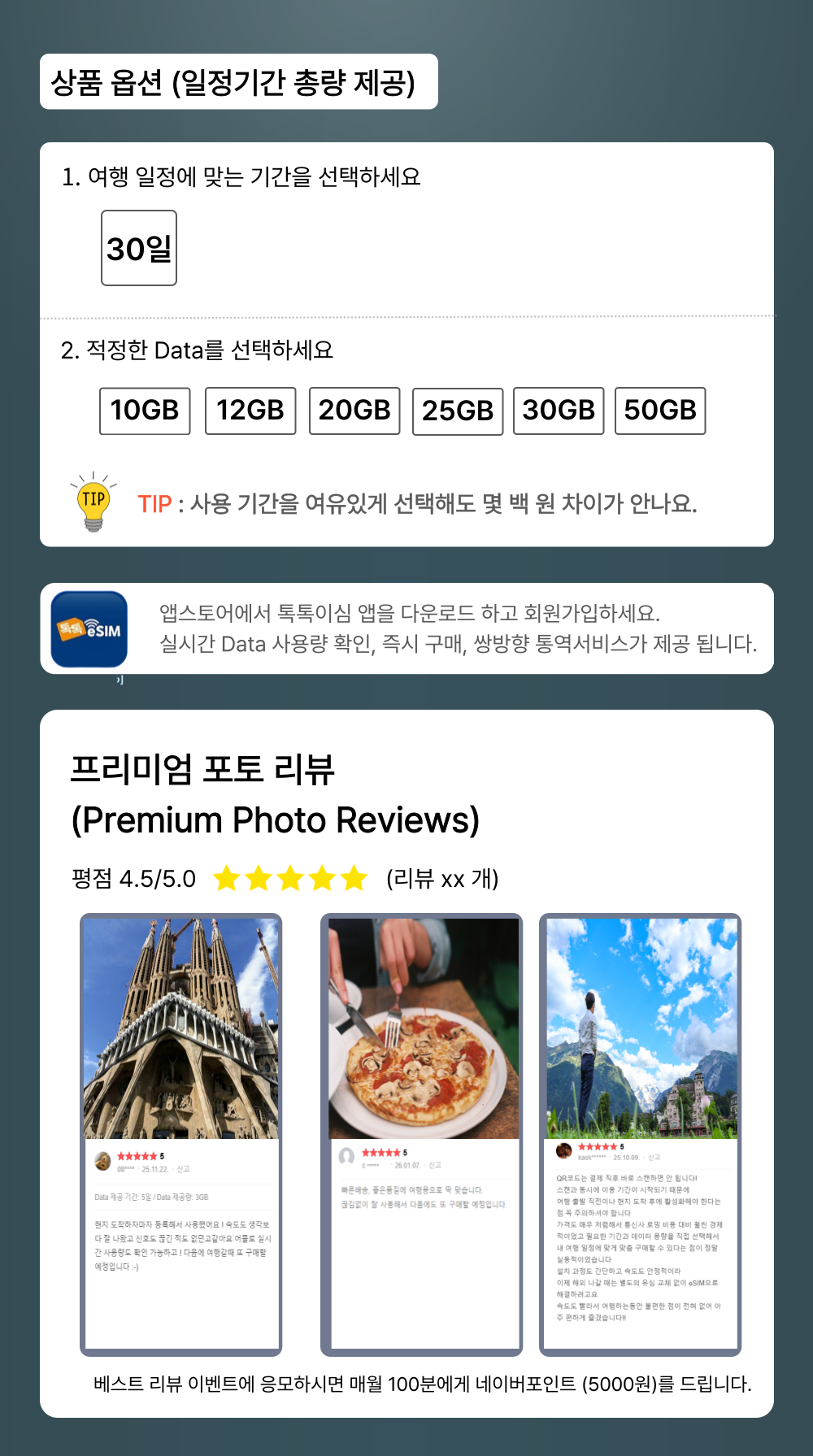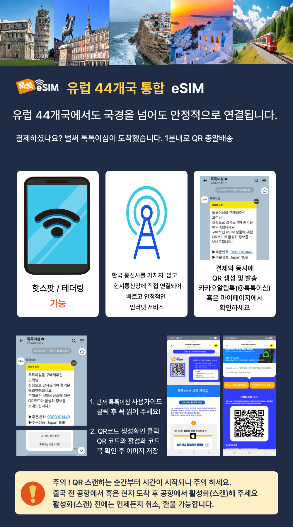 톡톡eSIM: 유럽44개국 30일간 제공