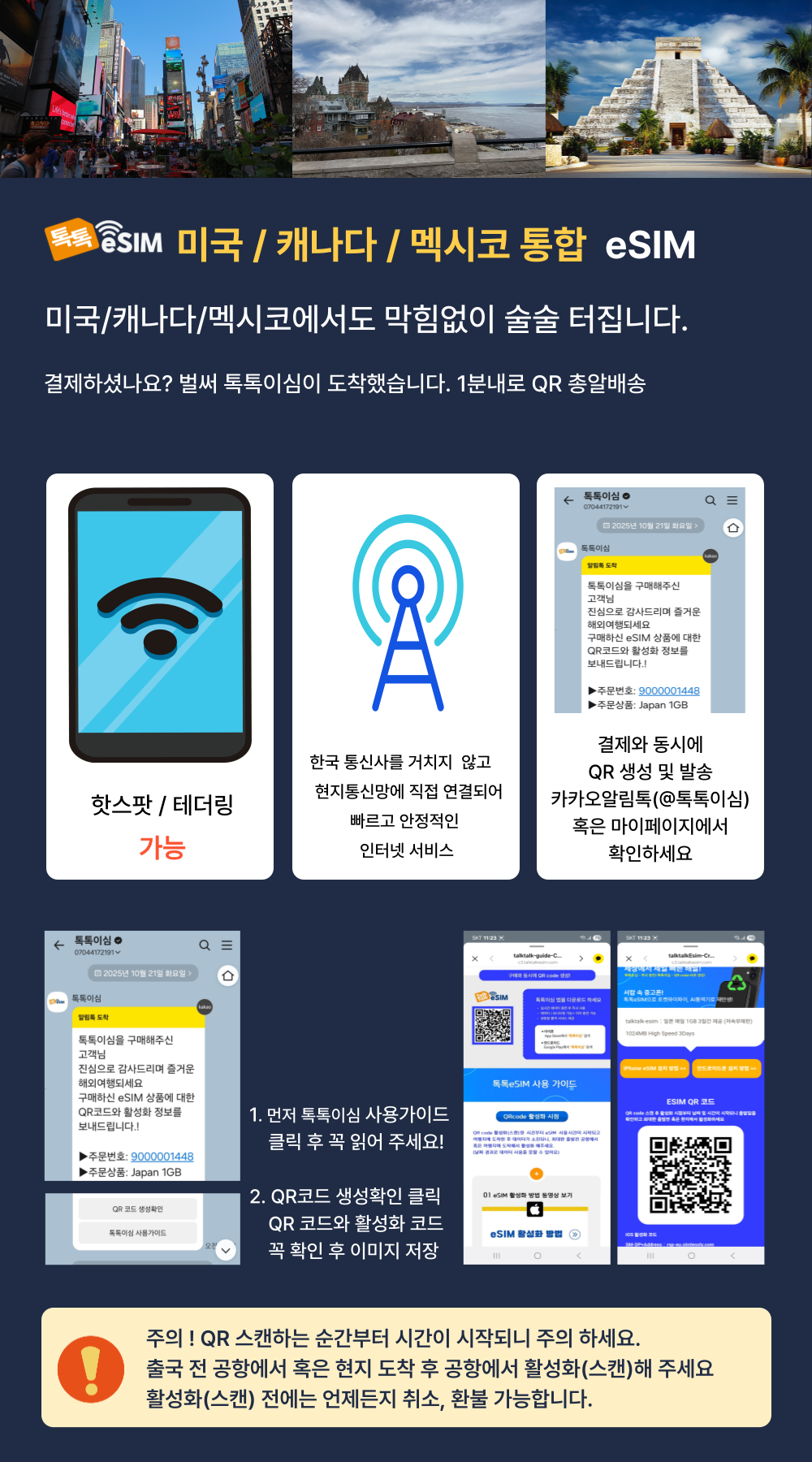 톡톡eSIM: 미국,캐나다,멕시코 30일간 제공