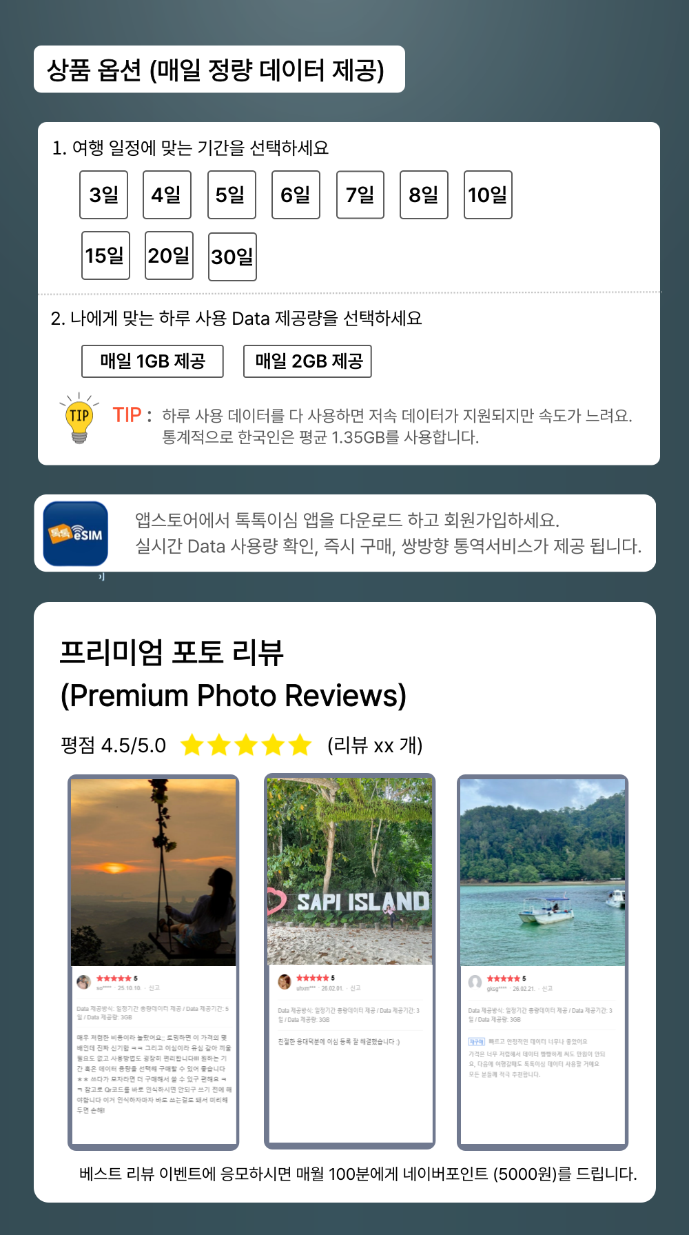 톡톡eSIM: 말레이시아 매일 2GB 제공