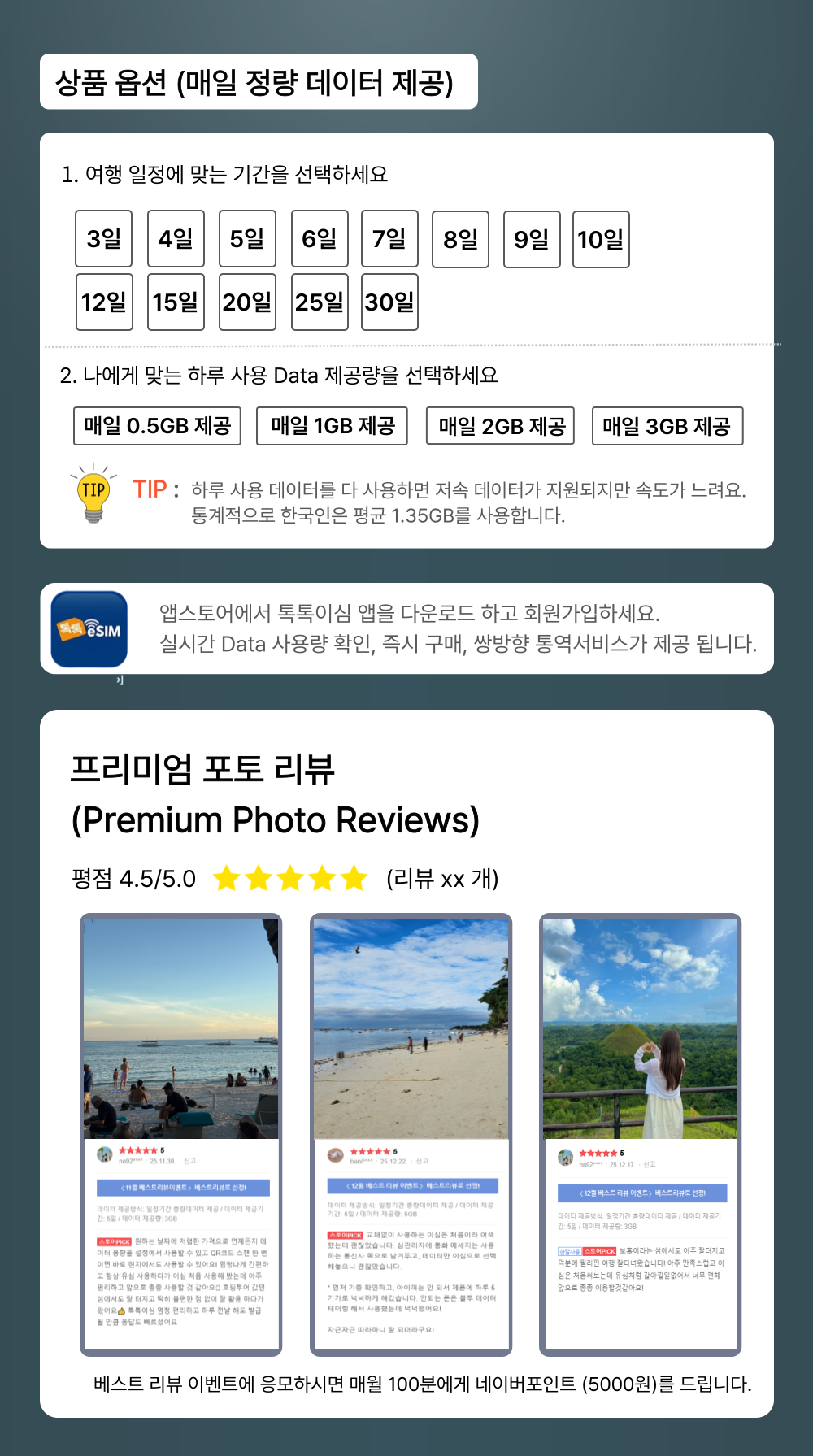 톡톡eSIM: 필리핀 매일 1GB 제공
