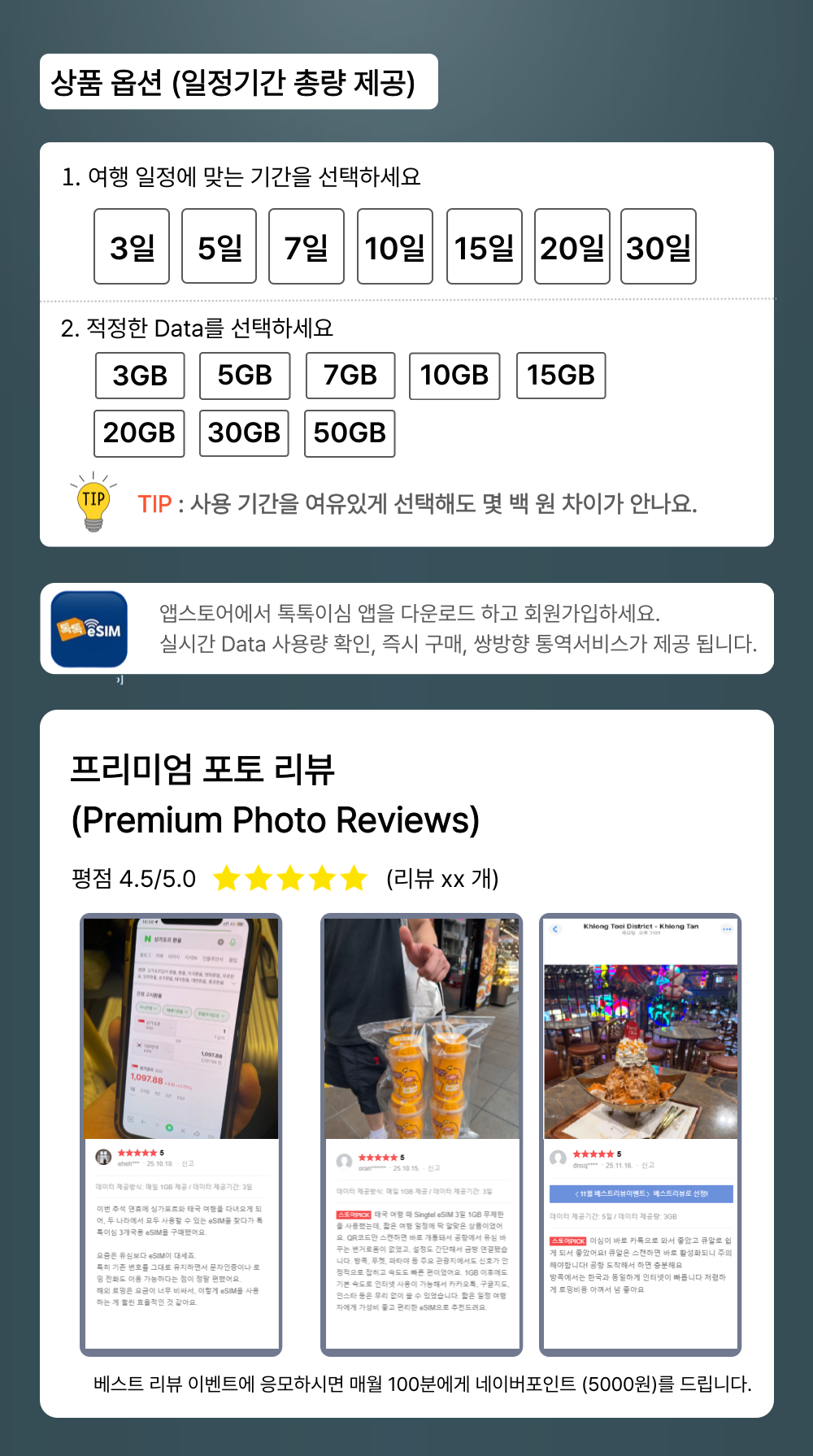 톡톡eSIM: 싱가포르,말레이시아,태국 20일간 제공