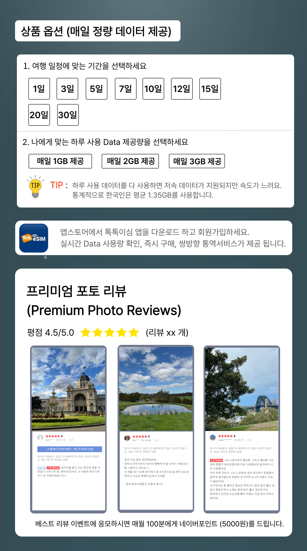 톡톡USIM : 호주 매일 3GB 제공